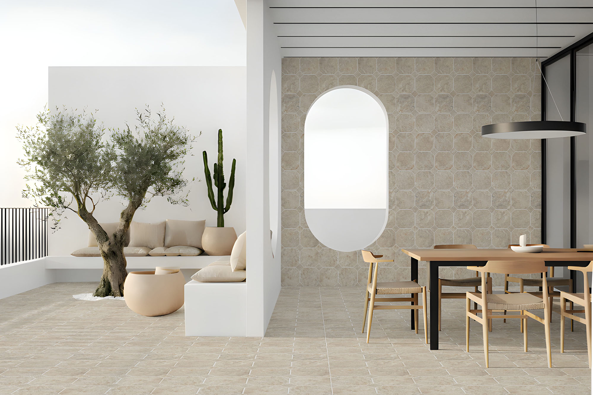 Inspired by the primal essence of stone, Lythos brings together singular geometric formats and a mineral-touch matte finish. Its formal balance and strong architectural character transform any space into a composition of natural elegance, solidity, and enduring, timeless strength.